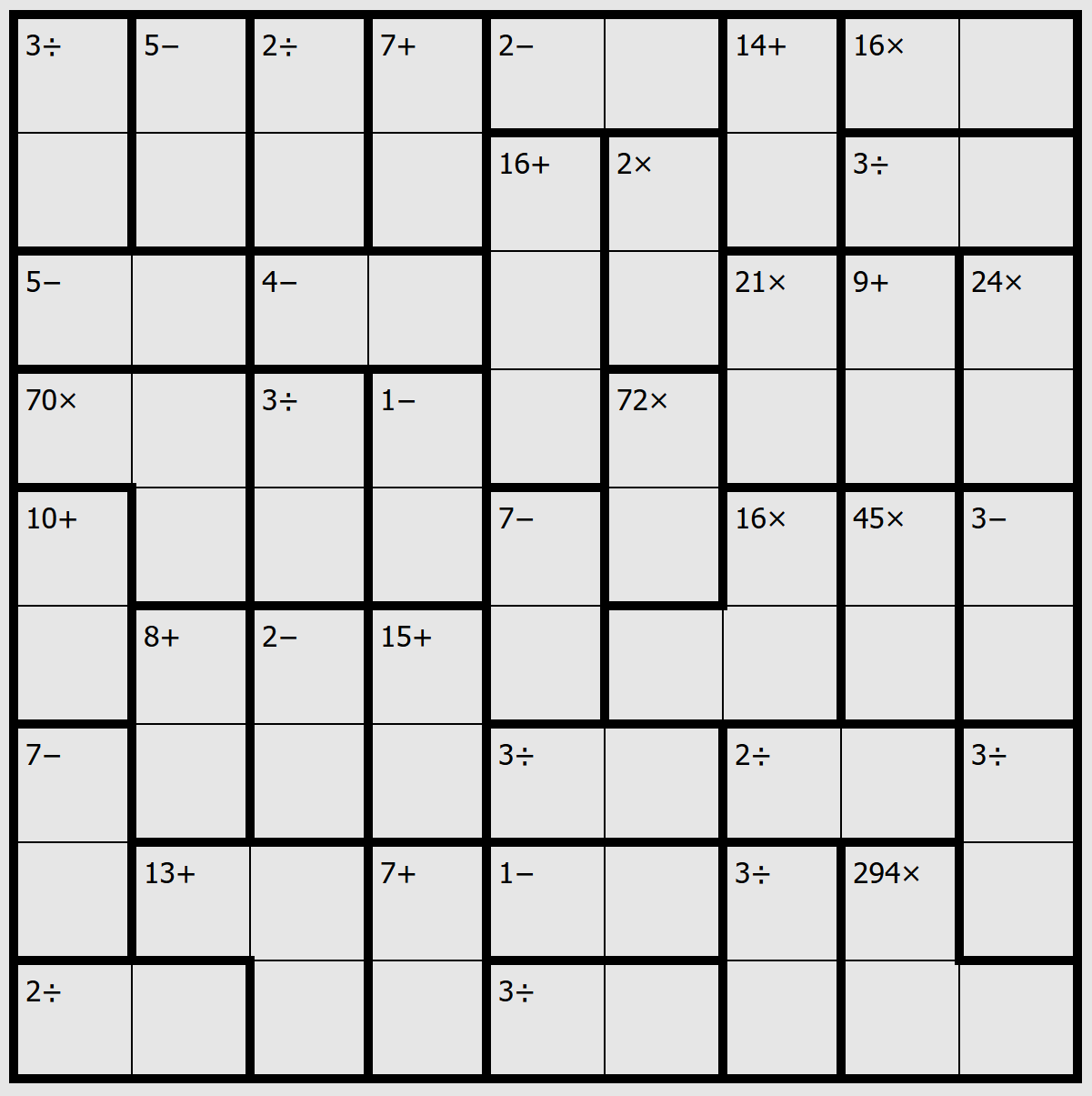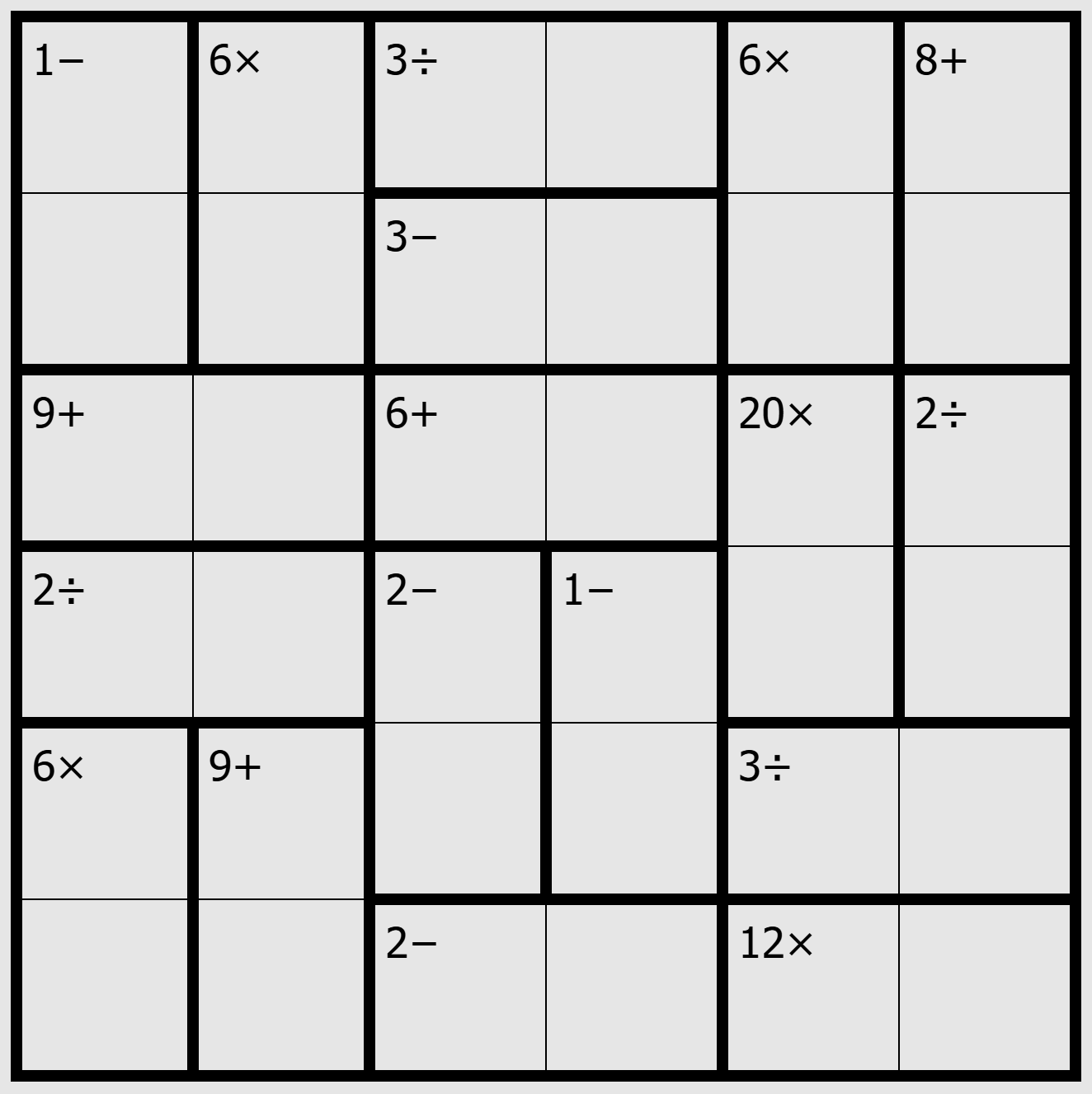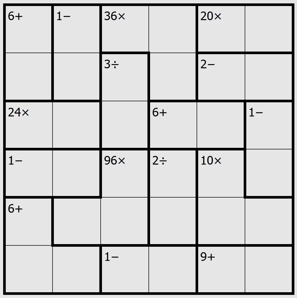 Keen is a Sudoku variant with a little math involved. Like Sudoku, you must fit numbers into the grid (from 1 to the number of cells in a row or column) so that there are no repeats in a row or column. As well, you must ensure that the numbers placed into each block (those groups of cells bounded by heavy lines) match the number and the arithmetic operation at the top left of the block. Subtraction (-) and division (÷) are always two cell blocks and the numbers can be in any order. Addition (+) and Multiplication (×) can be three or four or more cells and some of the products can be surprisingly high! In larger blocks it is permissible to have a number duplicated as long as the duplicates are not in the same row or column. Strategy: Most blocks can be reduced to only a few possible numbers: in a 9x9 grid a 3÷ block can only include 1,2,3,6,9, for example. Some two-cell blocks will have only one combination (35× must be 5 and 7), and those two numbers can be removed from the cells in the rest of the row or column. Unlike Sudoku, you will find yourself discovering new and novel ways of moving forward almost every time you do one of these! I find these excellent for getting my brain into the spot it needs to process clues logically and play good bridge! Click on the puzzle you want to try at the right (or the caption below) to go to the page with all the instructions you’ll need. These puzzles come from Simon Tatham’s Portable Puzzle Collection (see below) and there are links there to apps for most devices.