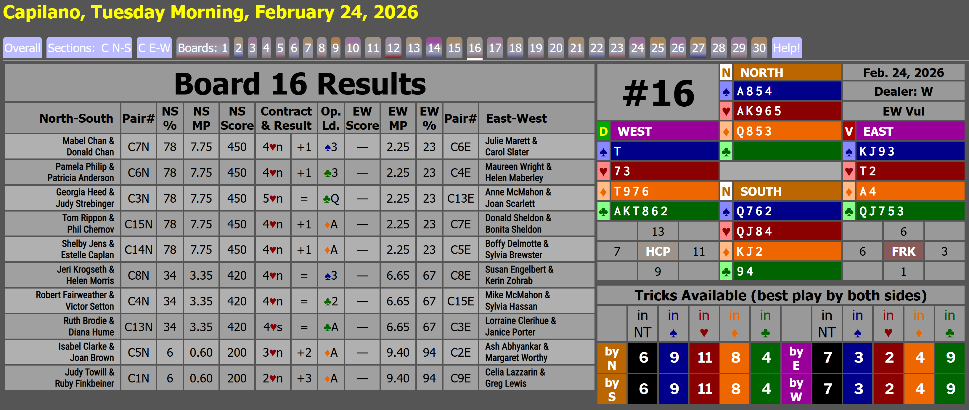 New! Bridge Results from Games McBruce directs (more informative and colourful than ACBL Live!), below in the dark blue Bridge Results tab