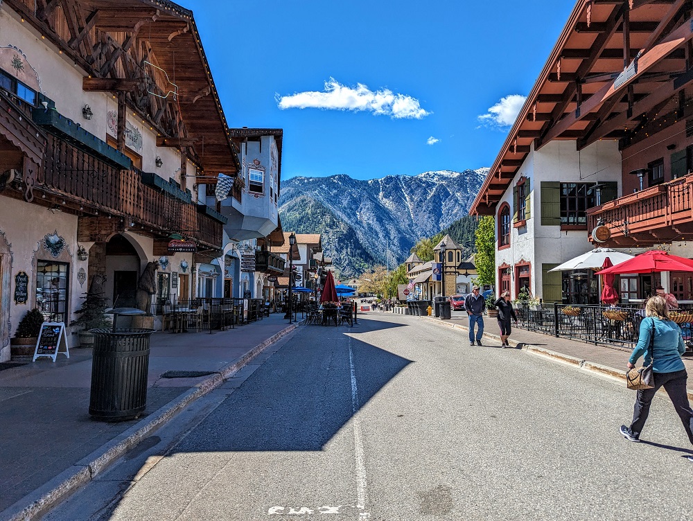 Driving: From I-90 going westward, exit Northbound onto Hwy. 97 in Ellensburg at the W. University Way exit, then left on Hwy 2, northwest through Peshastin into Leavenworth. From I-90 going eastward, exit in Cle Elum at the 970 junction for a shortcut to Highway 97 and then left where it meets Highway 2. Highway 2 east from Everett, north of Seattle, is a much more scenic route which will take about two hours. Highway 2 west from Wenatchee is about 20-30 minutes drive.